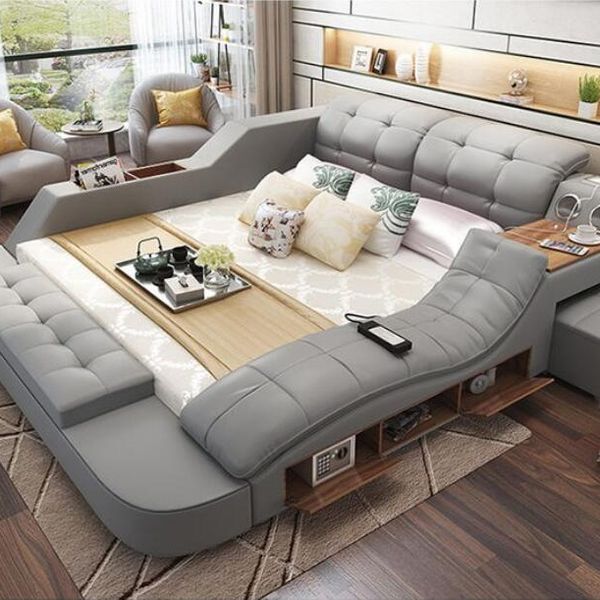 Superior Bedroom Living Room Hotel Multifunctional Soft Bed Furniture Leather Bed Speaker USB Charger Massage Sofa Bed$650