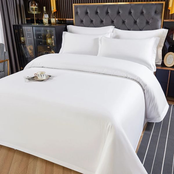 Bulk Luxury Hotel Quality Bedding Single Queen Size White Fitted Flat Bed Sheets for Hotels and Hospitals$6.88