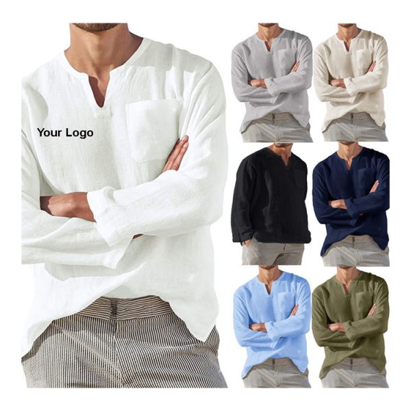 Wholesale Blank Cotton Linen Shirt Mens Embroidery Logo Casual Shirts for Men$3.75