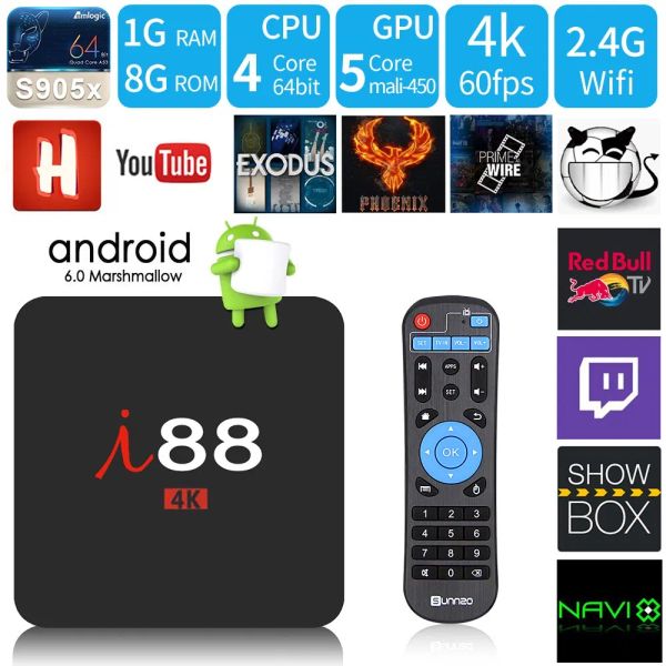 Hot Sale I88 Android 7.1.2 Smart TV Box S905X Quad Core 1GB RAM/8GB ROM with 4K 1080P HD, WiFi Media Player$25.8