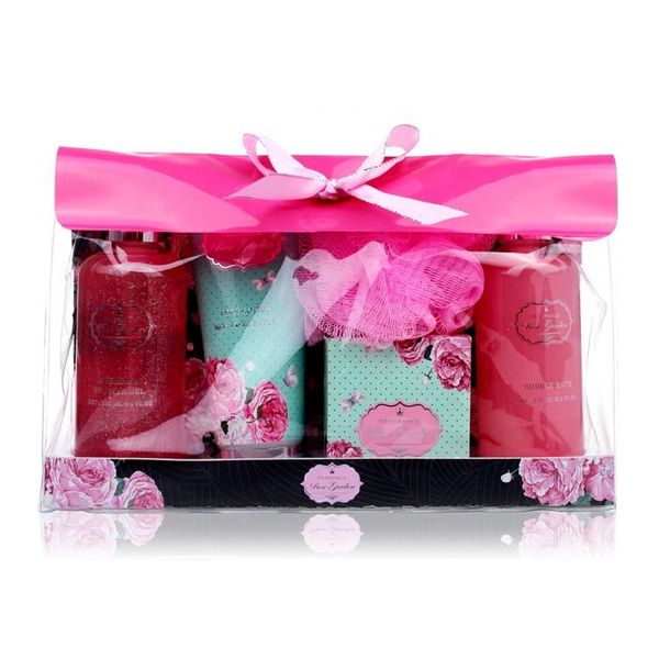Lady Valentines Gift Box 5pcs Body Spa Rose Moisture Bath Set Rose Perfume Body Wash for Women$5