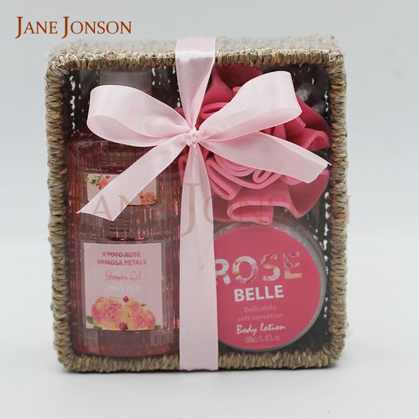 High Quality Lady Floral Bath Gift Set Body Lotion Body Wash Thick Salt Socks$3