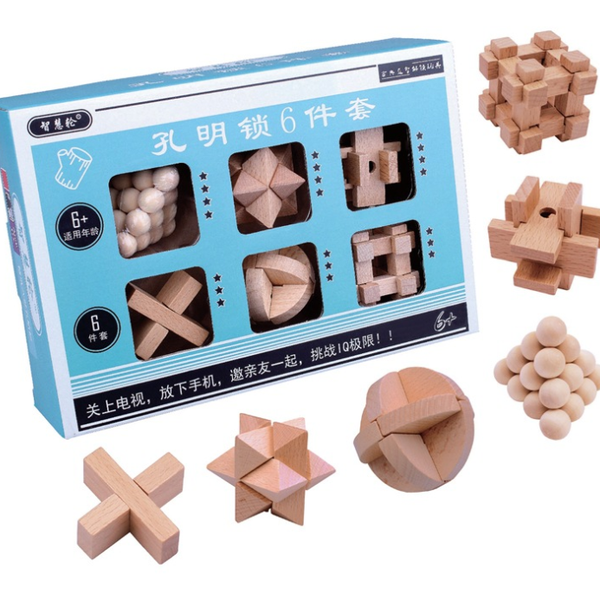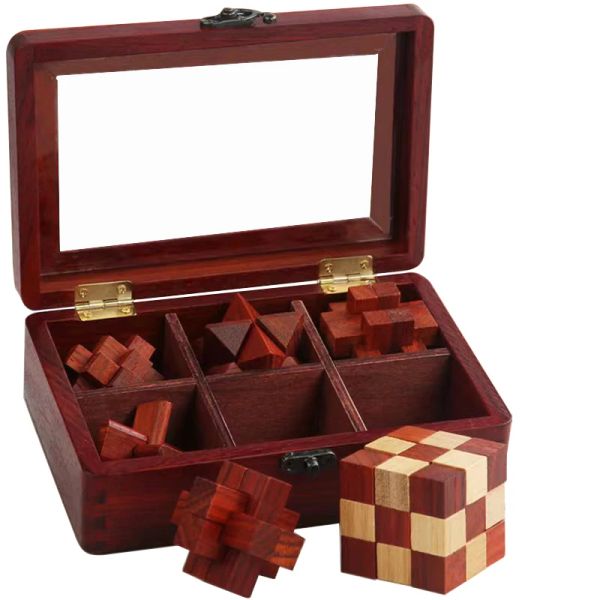 C02354 6 in 1 3D Wooden Puzzle Set 3D Luxury Wooden Brain Puzzle Teaser Kongming Lock for Teens and Adults Includes Storage Box$2.99