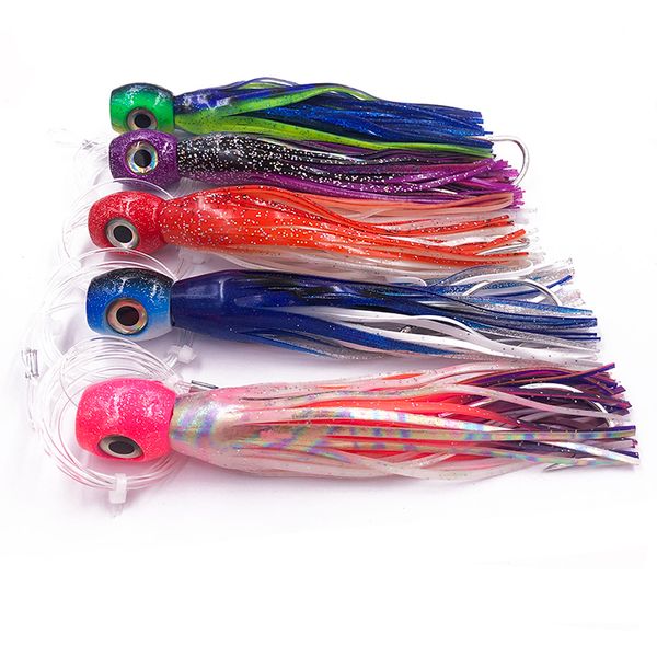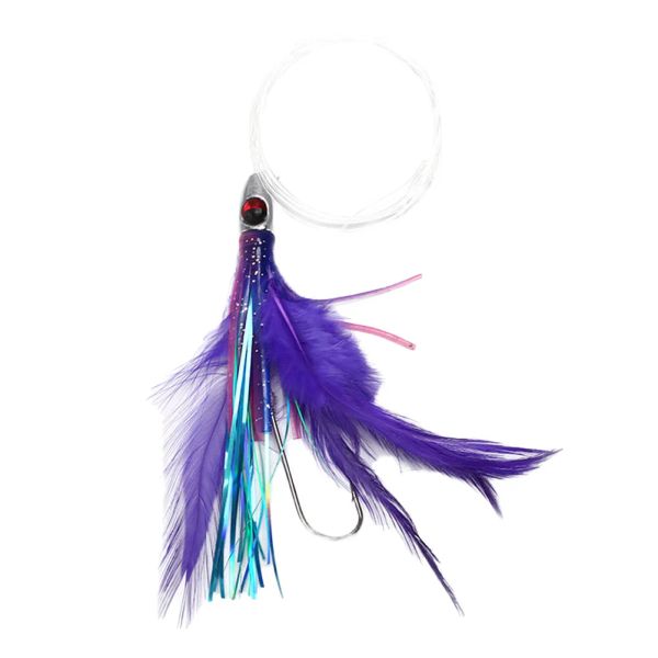 12cm/18g Jig Head Squid Skirt Feather Lure Pre-Tied Hook Line Saltwater Fishing Trolling Octopus Bait Ocean Boat Fishing$1