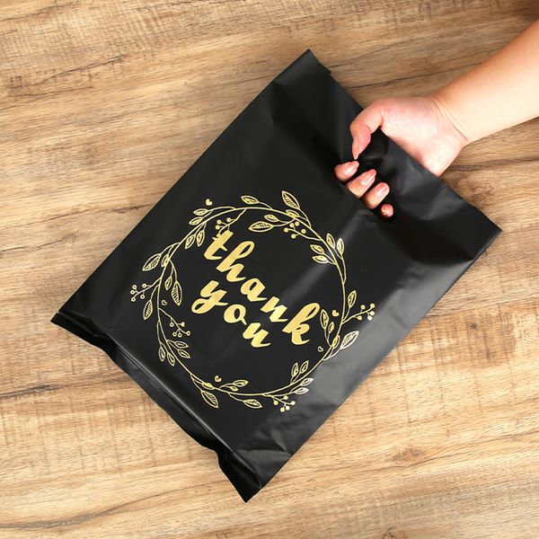 Hot Sale Multiple Sizes Poly Die Cut Handle Thank You Merchandise Bags Black Plastic Thank You Bags Bulk in Stock$0.03
