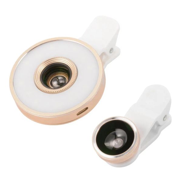Universal Wide Angle 12 LED Selfie Cellphone Camera Flash Fill-in Light Clip-on Lens + Fisheye Lens for iPhone Samsung$6.5