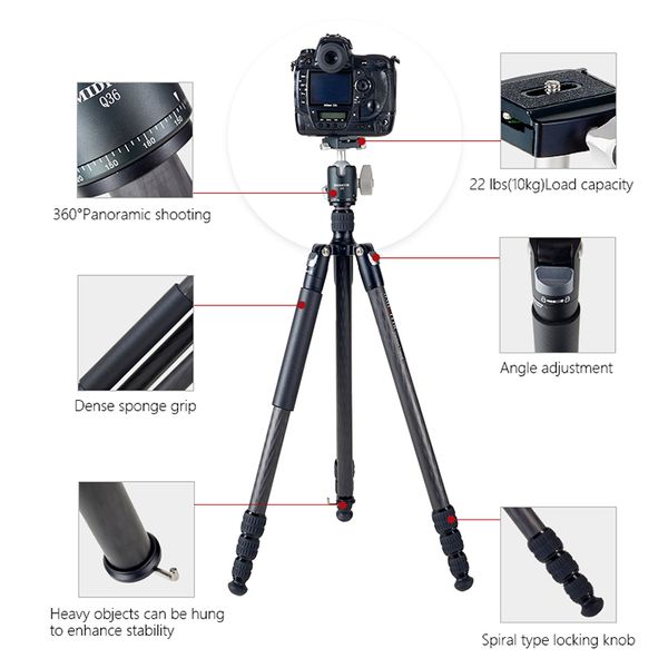 Professional Carbon Fiber Tripod Hunting Tripod for Shooting Camera Tripod for Camera and Hunting RT1666$128