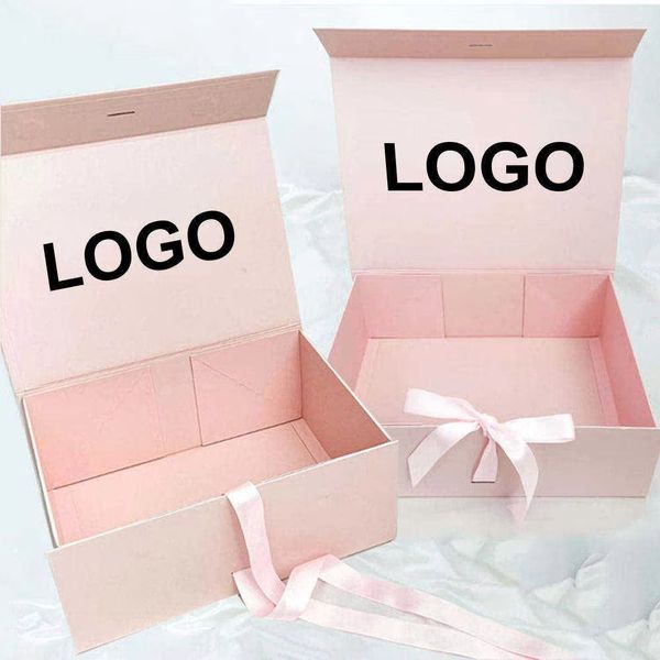 Customized 1200g Cardboard Box Packaging Folding Magnetic Gift Box With Ribbon Wedding Gift Box for Cosmetic Jewelry$0.6