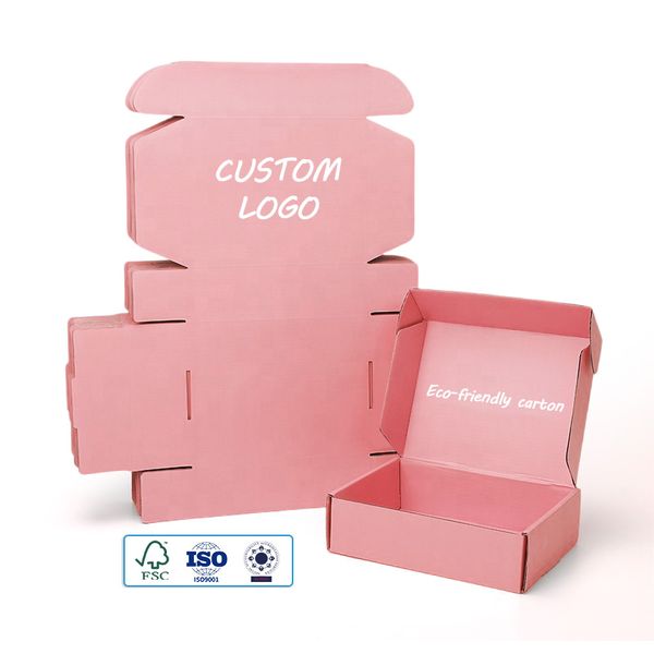 Custom Logo Pink Shipping Boxes for Small Business Small Corrugated Mailer Cardboard Boxes for Packaging Reusable Gift Boxes$0.21