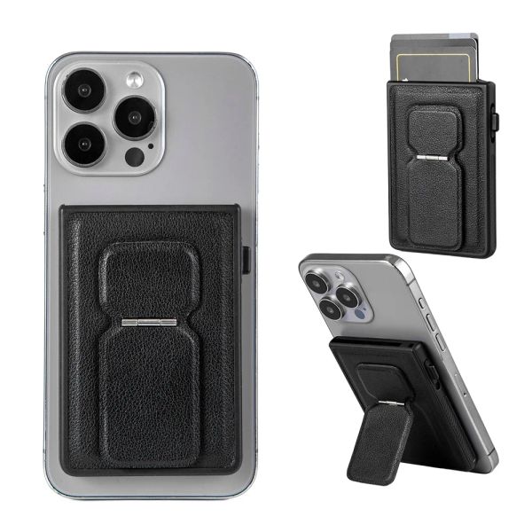 Freely Rotation Powerful Magnet Minimalist Phone Card Holder Custom Business Multifunctional 2 Layer Stand Magnetic Phone Wallet$3.62