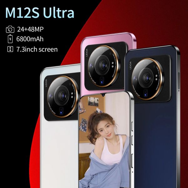 Viqee Phones M12s Ultra Hot Selling Unlock 7.3inch 2GB 16GB, and 16GB+1 Tb Mobile Phone, Ready in Stock$42
