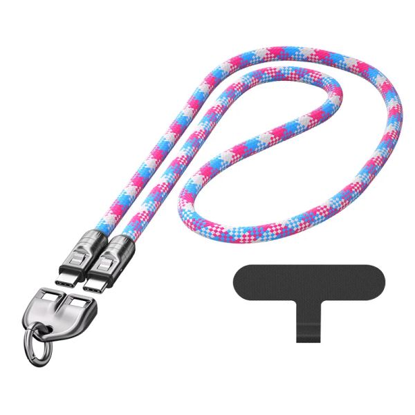 240 W Quick Charging 2 in 1 CrossBody Phone Lanyard Custom 0.3m 1.2m Durable Thick 7mm Nylon Braided Type C Cable$2.38