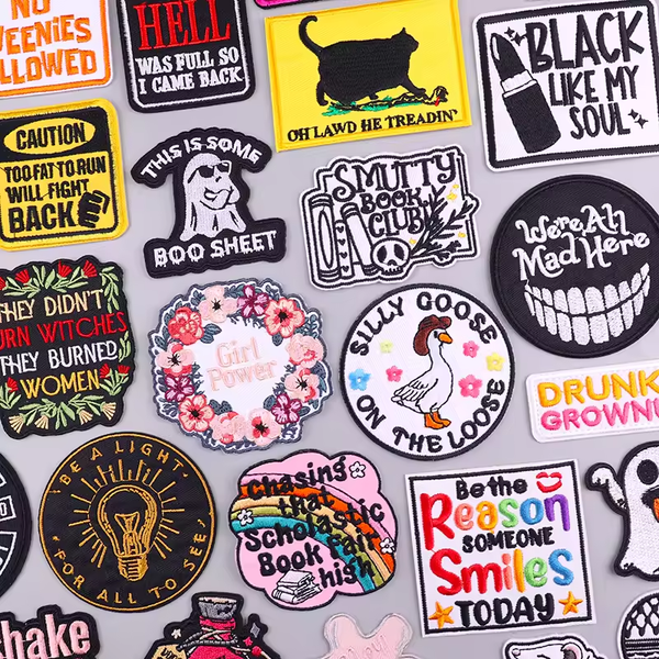Custom Embroidery Logo Patch Wholesale Funny Quotes Iron on Heat Press Letter Embroidered Patches for Hat Clothing Bags$0.15