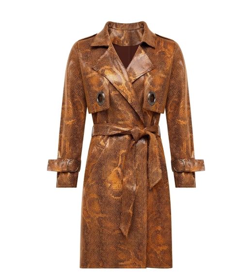 4098 Custom Belted Designer Trench Coat for Women 2025 Winter Stylish Luxury Plus Size Snake Print Leather Trench Coats Ladies$20.5