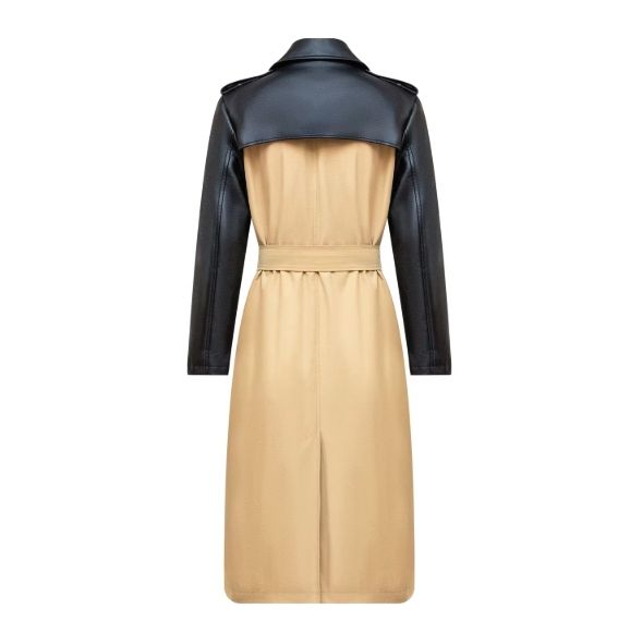 4100 Custom High Quality Ladies Long Luxury Trench Coats Wholesale Designer Unique PU Leather Patchwork Trench Coat for Women$31.5