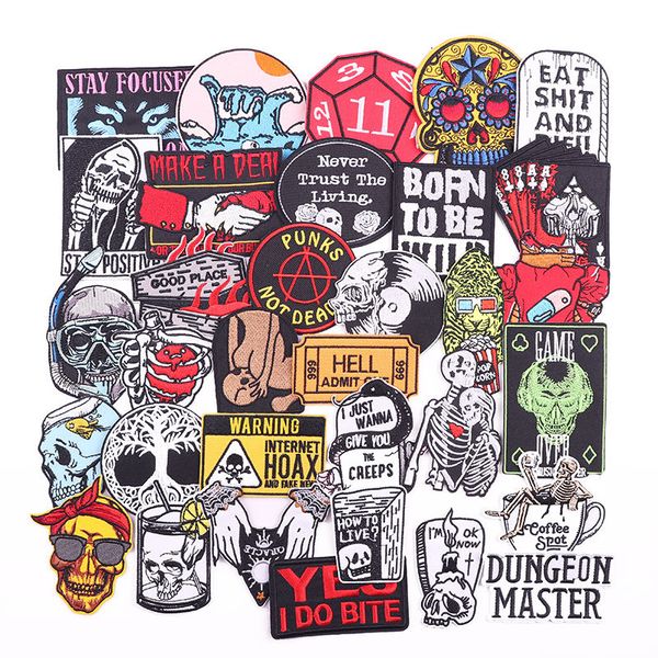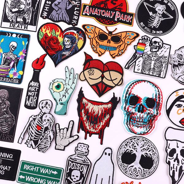 Punk Embroidery Patch for Clothing Custom Logo Patches Skull Skeleton Iron on Patches DIY Accessories$0.44