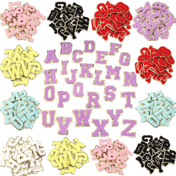 26Pcs/Set English Letters Patches Gold Edged Custom Chenille Patches Ironing Patch High Quality Sew on Clothing Accessories logo$4.08