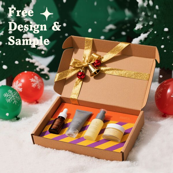 Custom Luxury Christmas Skincare Shipping Boxes Free Shipping on Christmas Day Cardboard Packaging with Elegant Paper Design$0.182
