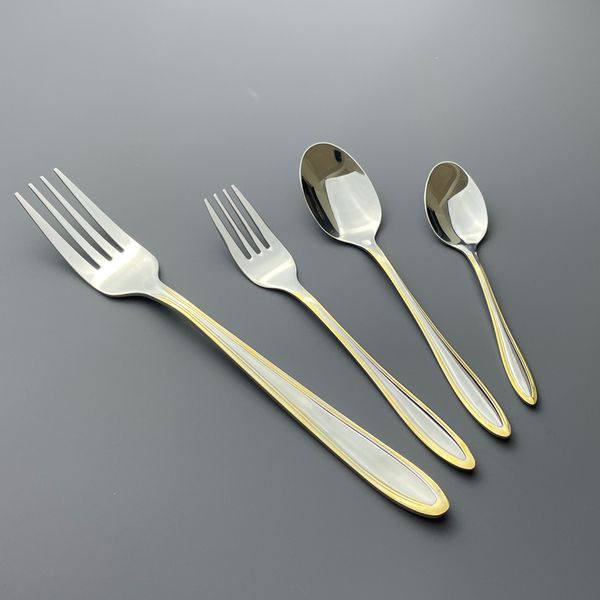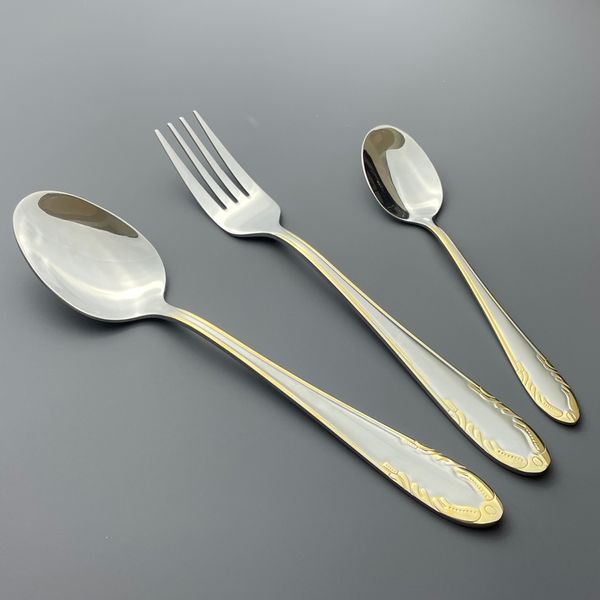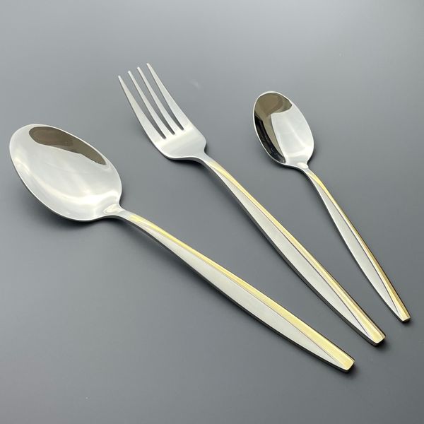 Luxury Stainless Steel Spoon and Fork Set Partially Gold-Coated Cutlery for Weddings and Special Occasions$1.3