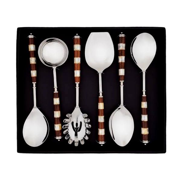 Wooden and MOP Handle Serving Spoon Fork Set Inexpensive Modern Design Wedding Tableware Cutlery Set for Home and Kitchen Usage$10