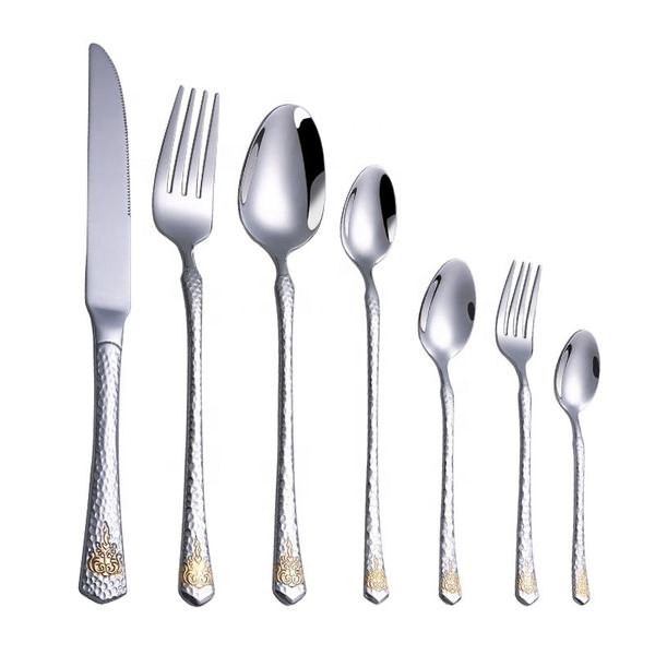 Wholesale Hotel Wedding Gold Hammered Cutlery 4 Pcs Set Stainless Steel Knife Fork Spoon$2.89