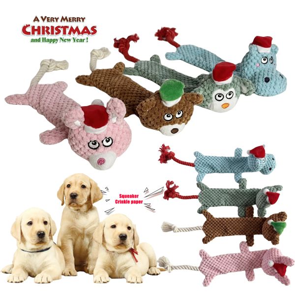 Durable Christmas Interactive Dog Toy Squeaky Doy Toy Plush and Rope$0.88