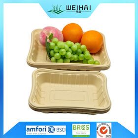 Wholes bamboo fiber material food tray food tray takeaway brown eco friendly frozen food trays 48g$0.071