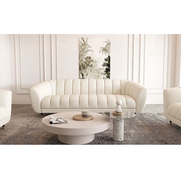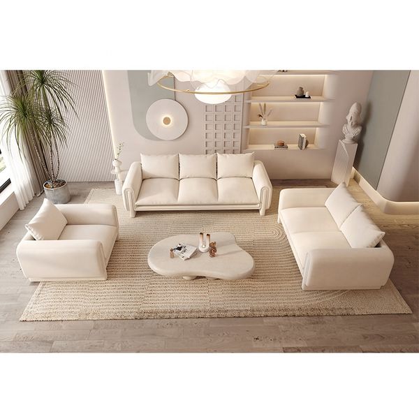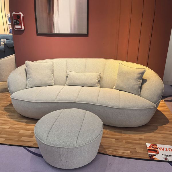 Modern Villa Living Room Single Three Person Sofa Set Household Beige Lamb Fabric Cashew Nut Arc Creative Fabric Curved Sofa$872