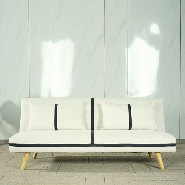 Nordic 2 Seat Comfortable Linen Fabric Folding Sofa Bed Solid Wood Home Living Room Furniture Hotel Lobby$76