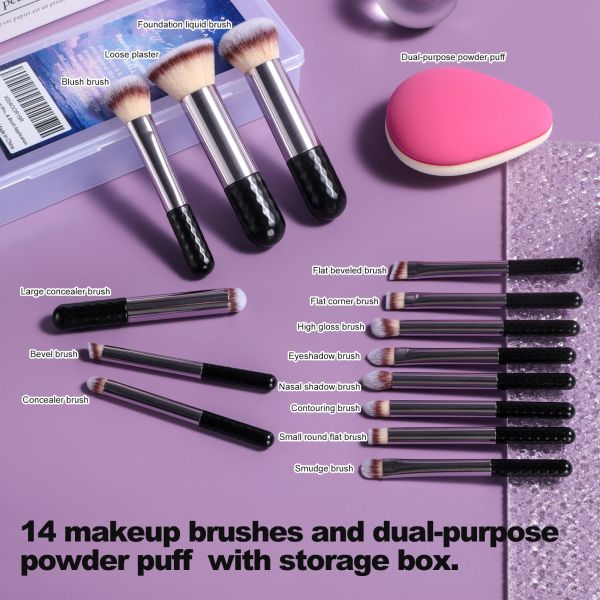 JPNK Travel Makeup Brush Set 14PCS Synthetic Face Foundation Eye Shadow Makeup Brushes Powder Puff with 5X Magnifying Mirror Box$4.59