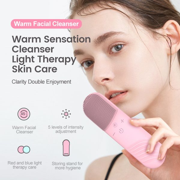 Silicone Face Scrubber Electric Facial Cleansing Brush with Heating Vibration Waterproof Face Wash Brush with 5 Speed Adjustable$5.4