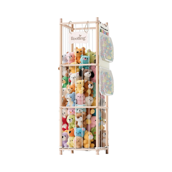 54-Inch Tall Wooden Storage Organizer for Kids Teens Cute Zoo Animal Toy Block Storage Bag with Elastic Cord for Living Room$7