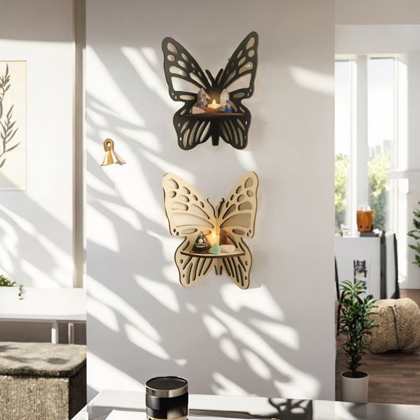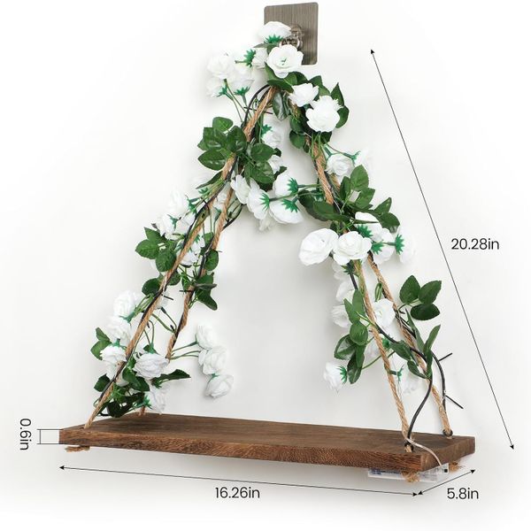 2-Piece Green Leaf Floating Wood Shelves for Command Strip Adhesive for Bedroom Decor and Aesthetic Room Design$4.5