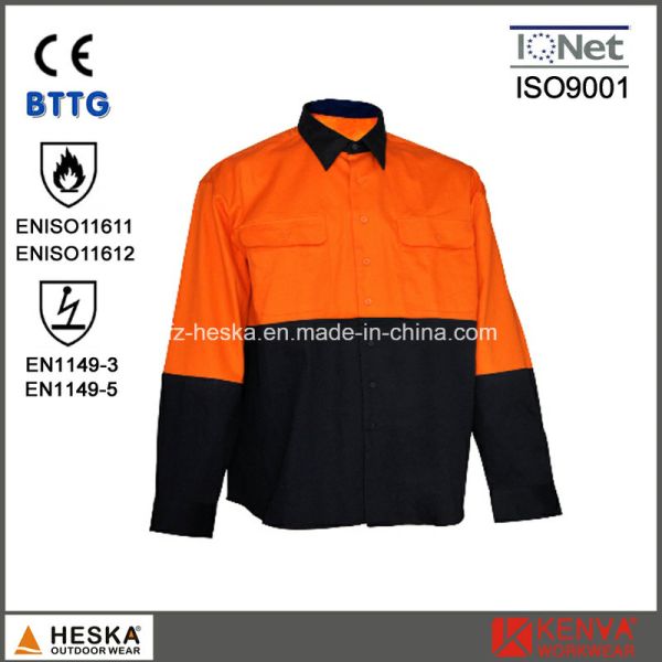Custom Wholesale Long Sleeve 100% Cotton Flame Retardant Fire Resistant Workwear Safety Workwear$8