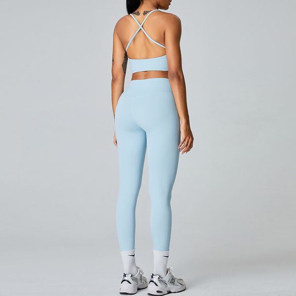 Women's High-Waisted Yoga Outfit Set - Cross-Back Strap Top and Fitness Leggings for Yoga Gym and Training$18.9