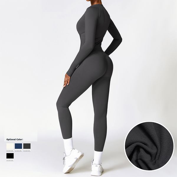 Quick-Dry Zippered Compression Running Long Sleeve Sports Jacket for Women, Fitness Nude-Feel Yoga Top Set$7.9