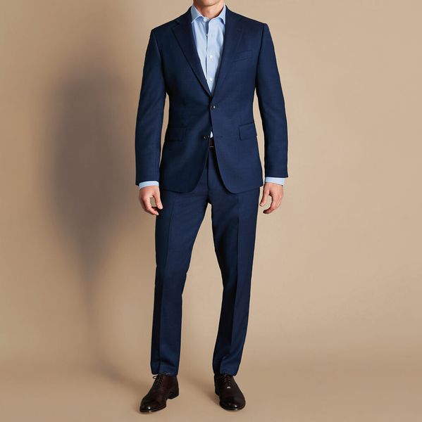 Casual Navy Men's Single Breasted Business Suit Customized Slim Fit High Quality TR Fabric 2 Piece Set for Parties$65
