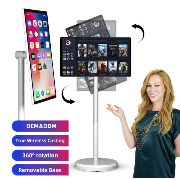 Outdoor Display Screen Rotating Led Tv With Stand Flat Screen Tv Portable Touch Screen Monitor Android 13 Smart Tv on Wheels$179
