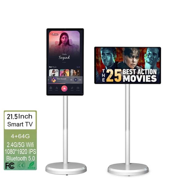 White 6Gb+128Gb Flat Screen Tv 21.5 Inch Digital Signage on Wheels Movable Charging Smart Display Interactive Smart Portable Tv$219