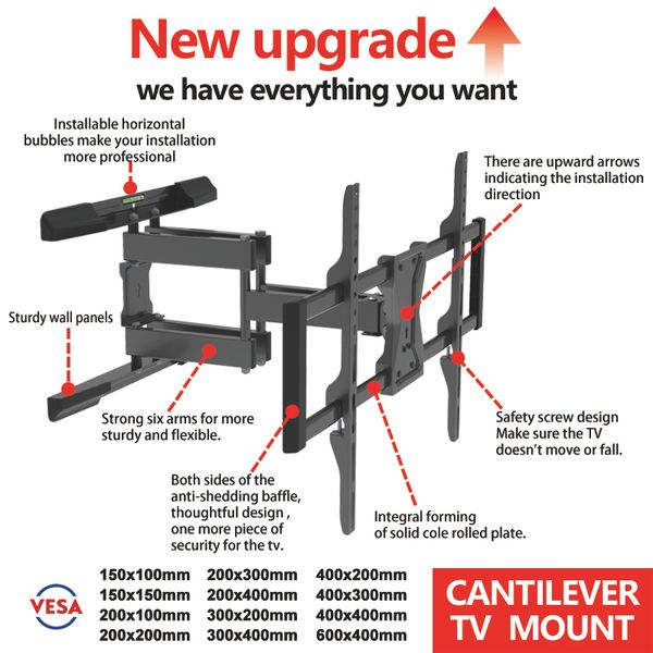 Xinadda Push in Pop-out Video Wall Mount Arm Adjustable Tv Mount Tv Bracket Fits for 47"/55" Screen$60