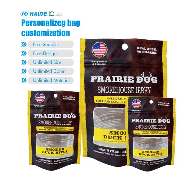 Custom smell proof stand up pet treats snack packaging dry dog food packaging bag with zipper$0.046