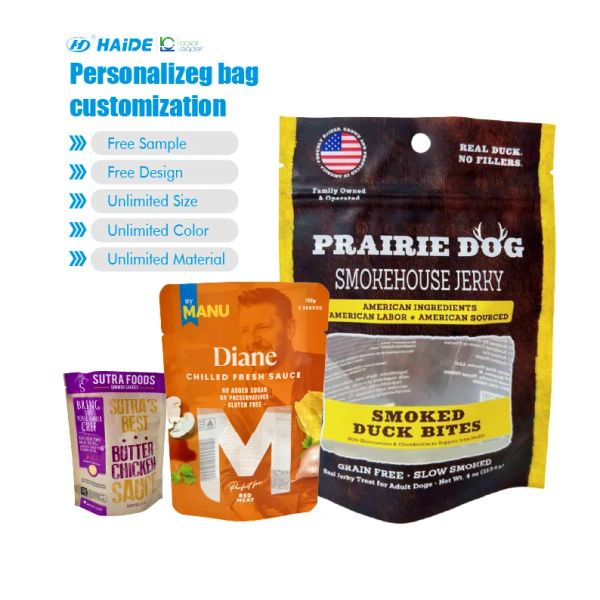 Custom Food Packaging Bags Resealable Stand up Pouches Plastic Food Grade Transparent Flexible Packaging$0.03