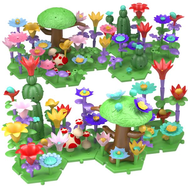 Flower Garden Building Educational STEM Toys Learning Pretend Play Gardening Set Flower Building Blocks Sets Toddler Toy$0.84