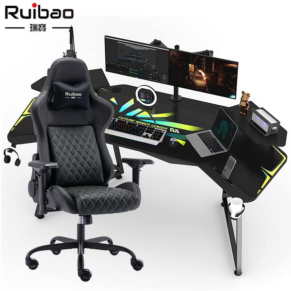 Ruibao Best Selling Height Adjustable Wooden Gaming Desk High Quality PC Computer Gaming Table$60
