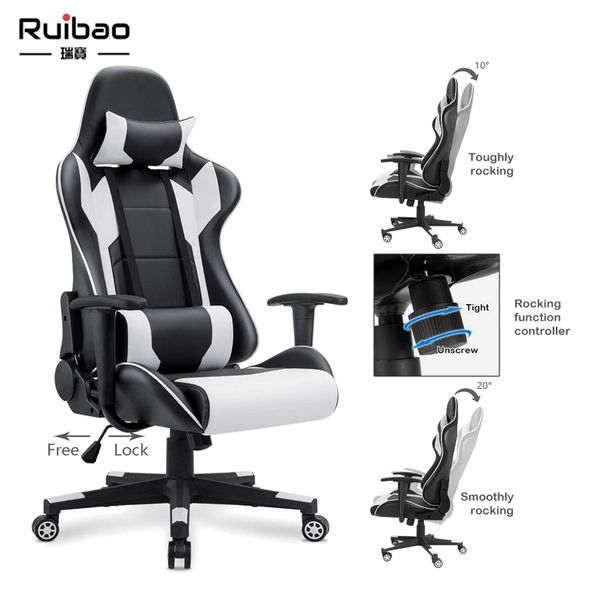 Professional Factory's Comfortable Gamer Computer Gaming Chair Modern Design Reclining Lift with PU Leather Backrest Black White$40