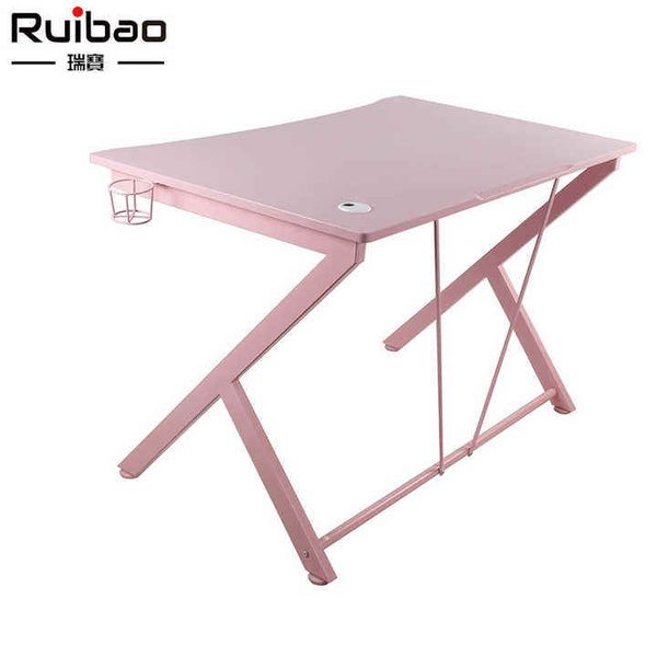 Hot Sale K Shaped Gamer Computer Desk Table Led Light Pink Gaming Desk for Girls Made of Wood$50