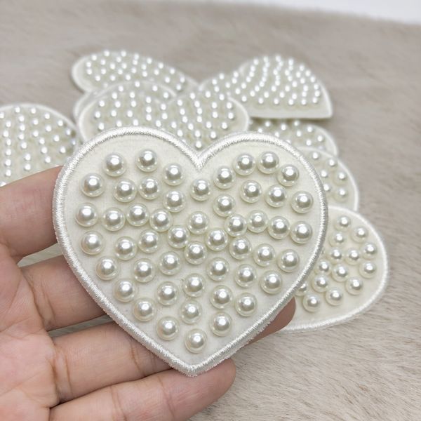 Custom Heart Pearl Embroidery Iron on Teddy Bag Patch Beaded Patches for Cloth$1.2