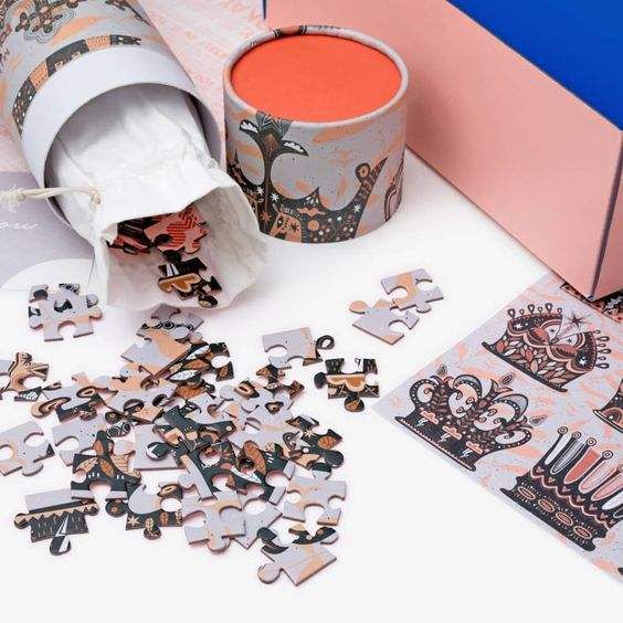 New Trend Low MOQ Custom Print 500 1000 Pieces Paper Tube Packaging Jigsaw Puzzles Custom Puzzle Box$0.1