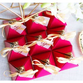 High quality Gift box Triangle wedding gift box ribbon and tag Paper gift box$1