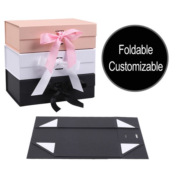 Customized pink wedding gift boxes magnetic wholesale cardboard foldable folding box for gift wrapping gift box with ribbon custom